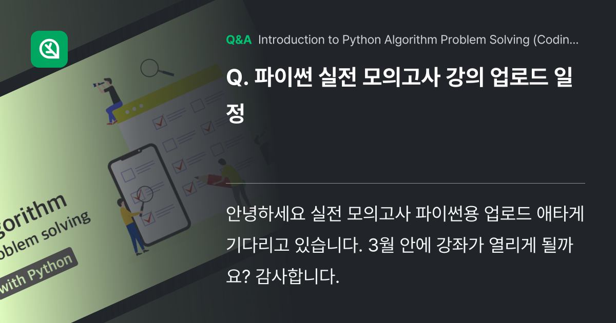 파이썬 실전 모의고사 강의 업로드 일정 - Inflearn | Community Q&A