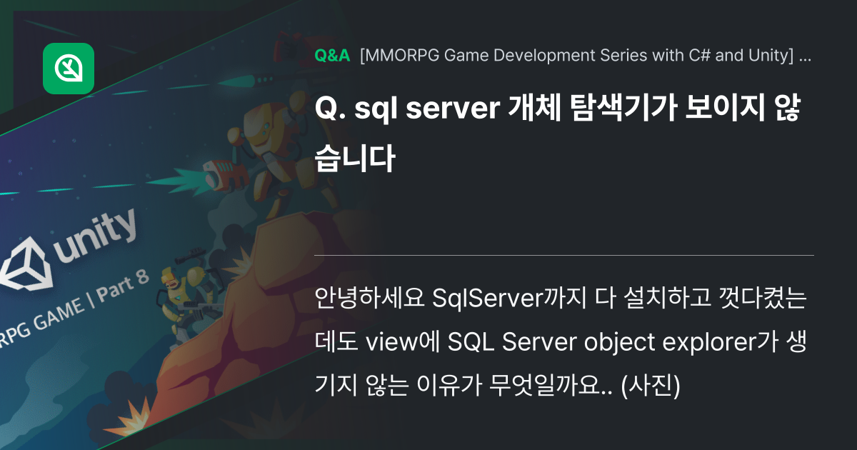 sql server 개체 탐색기가 보이지 않습니다 - Inflearn | Community Q&A