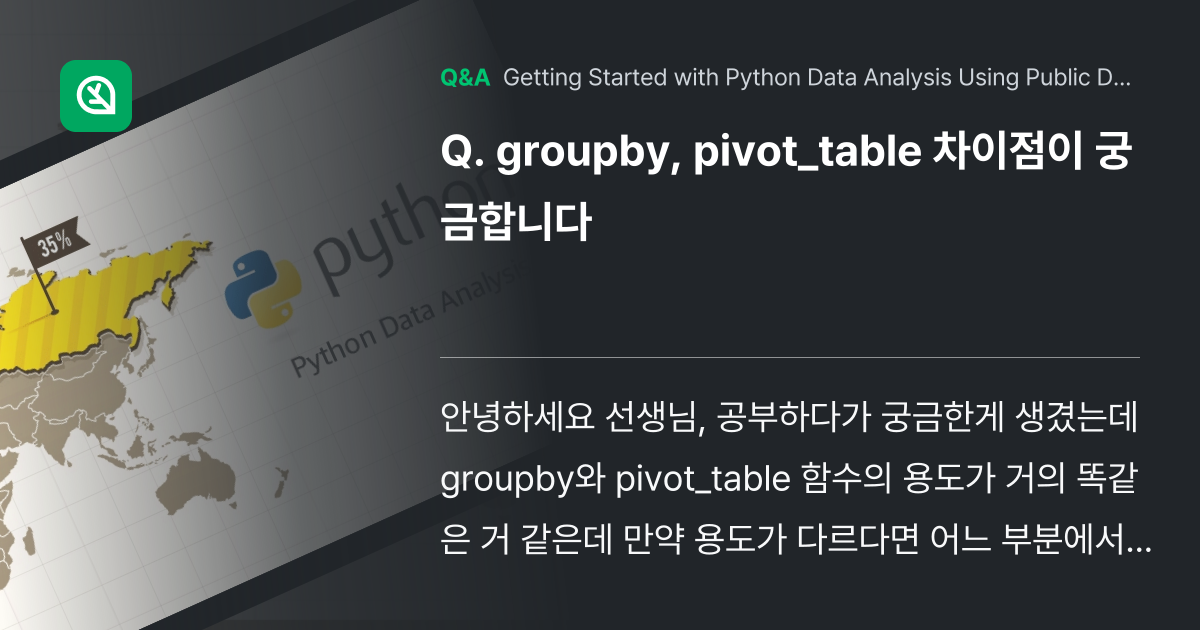 groupby, pivot_table 차이점이 궁금... - Inflearn | Community Q&A