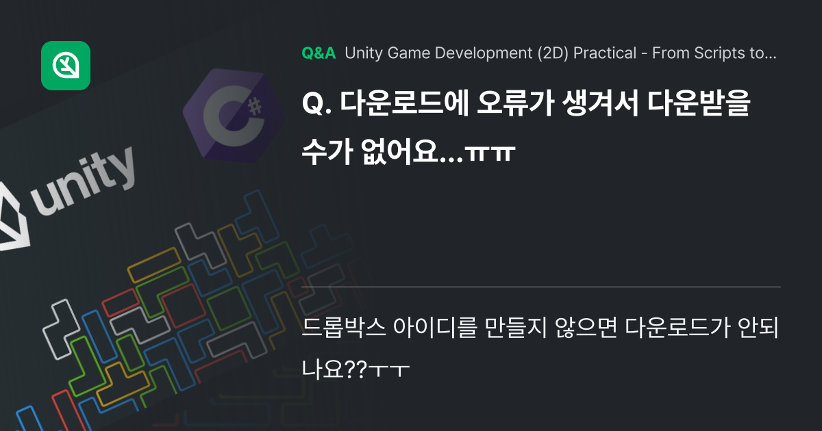 다운로드에 오류가 생겨서 다운받을 수가 없어요...... - Inflearn | Community Q&A