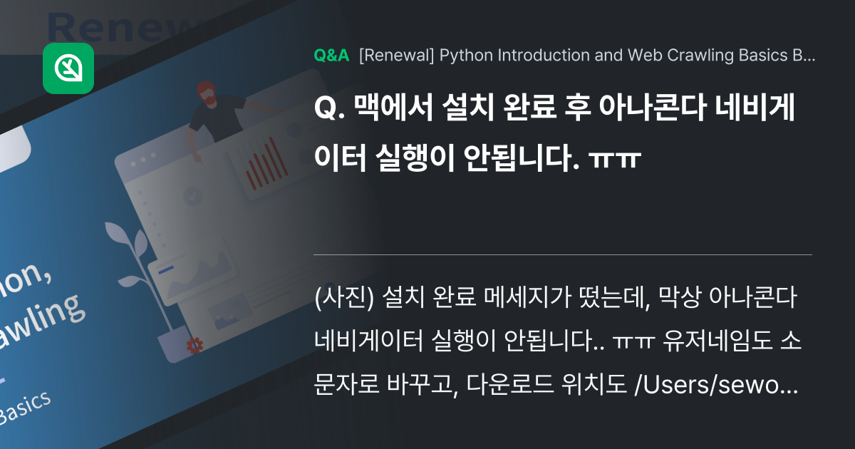 맥에서 설치 완료 후 아나콘다 네비게이터 실행이 안... - Inflearn | Community Q&A