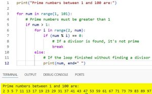 Based on this image's title: “Python Program To Print Prime Numbers | Python Programming Codes ...”