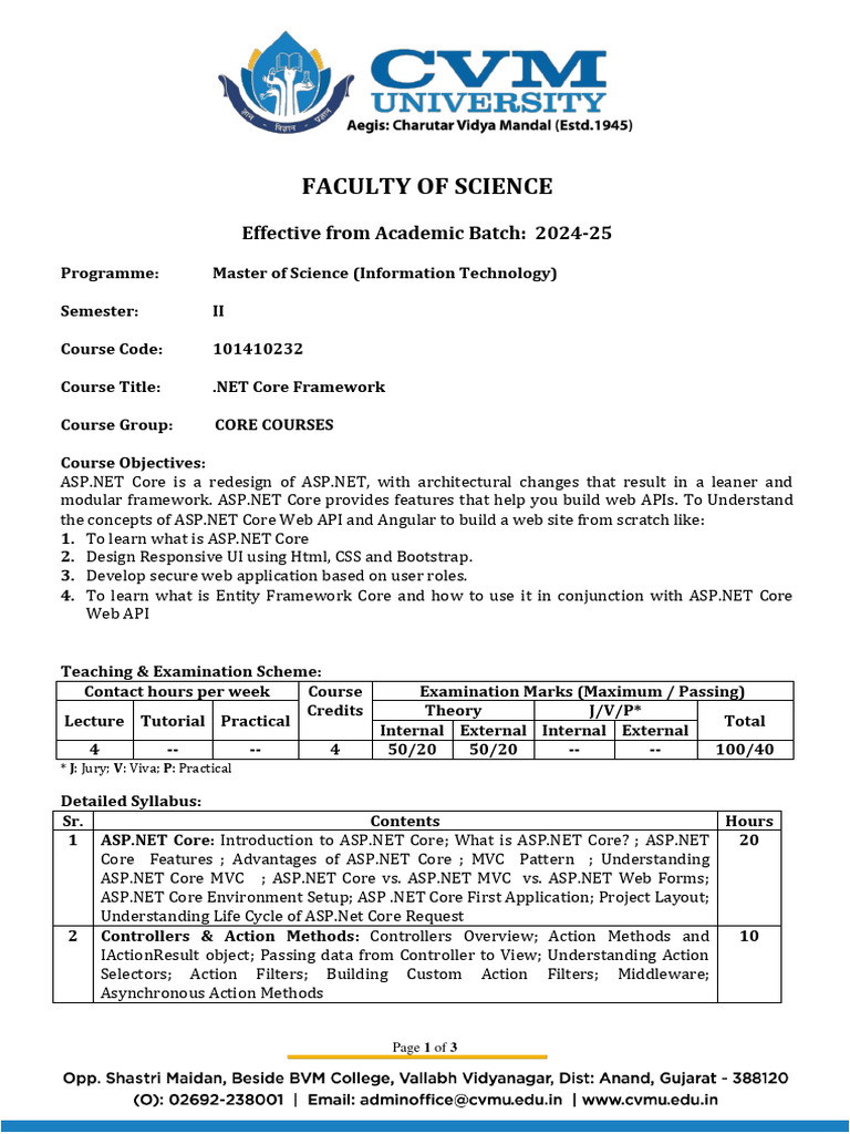 .NET Core Framework Course Overview | PDF | Model–View–Controller | Html