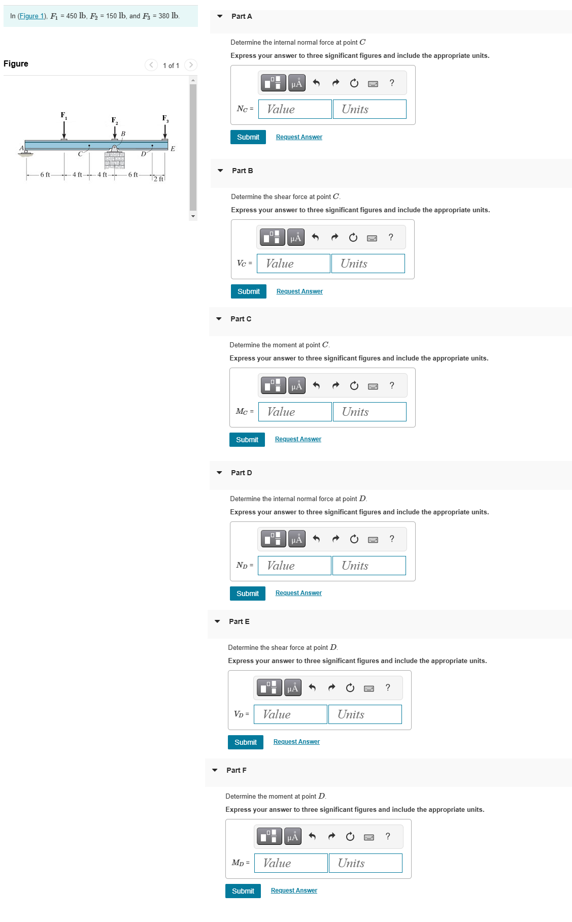 Solved ln (Figure 1), F1=450lb,F2=150lb, and | Chegg.com