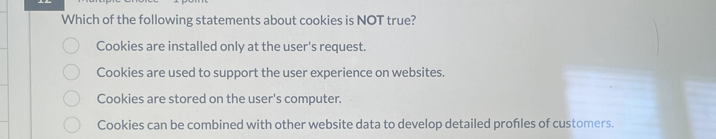 Solved Which of the following statements about cookies is | Chegg.com