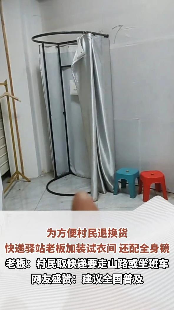 为方便村民退换货,快递驿站老板加装试衣间还配全身镜,老板:村民取快递要走山路或坐班车_凤凰网视频_凤凰网