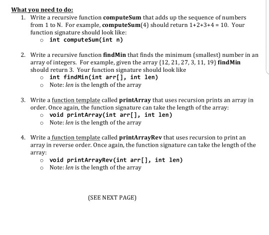 Solved What you need to do: 1. Write a recursive function | Chegg.com