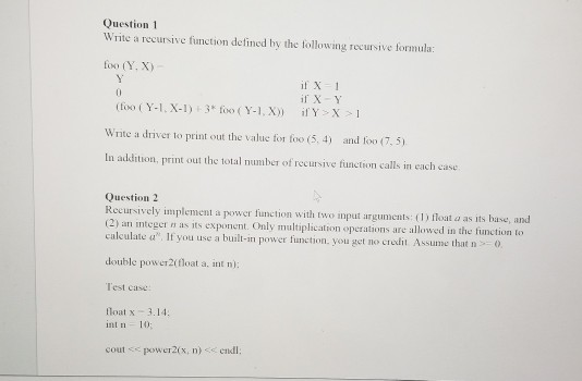 Solved 1.) Write the recursive function (in C/C++ ): int | Chegg.com