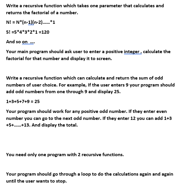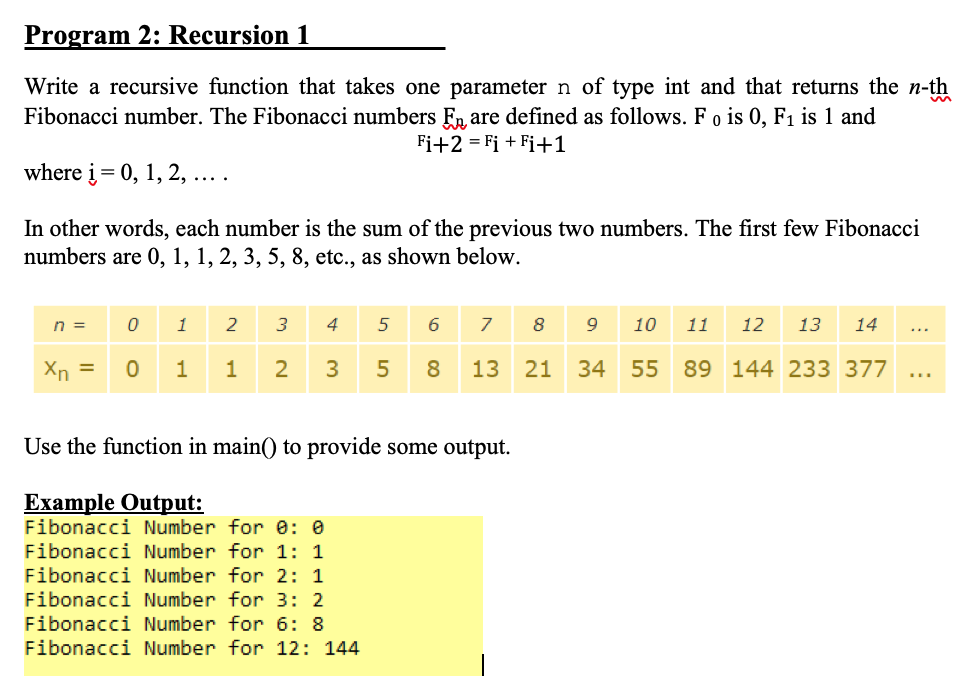 Solved 2. Write a program to implement a recursive function | Chegg.com