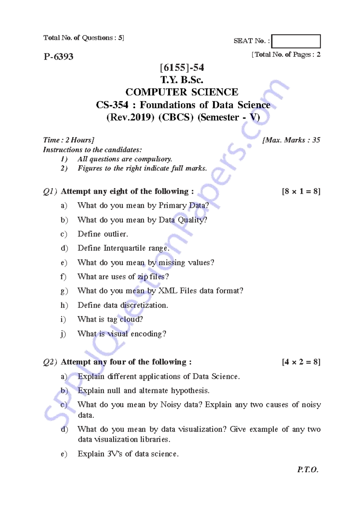 T.Y. B.Sc. CS Semester V: Foundations of Data Science Exam Q&A - Studocu