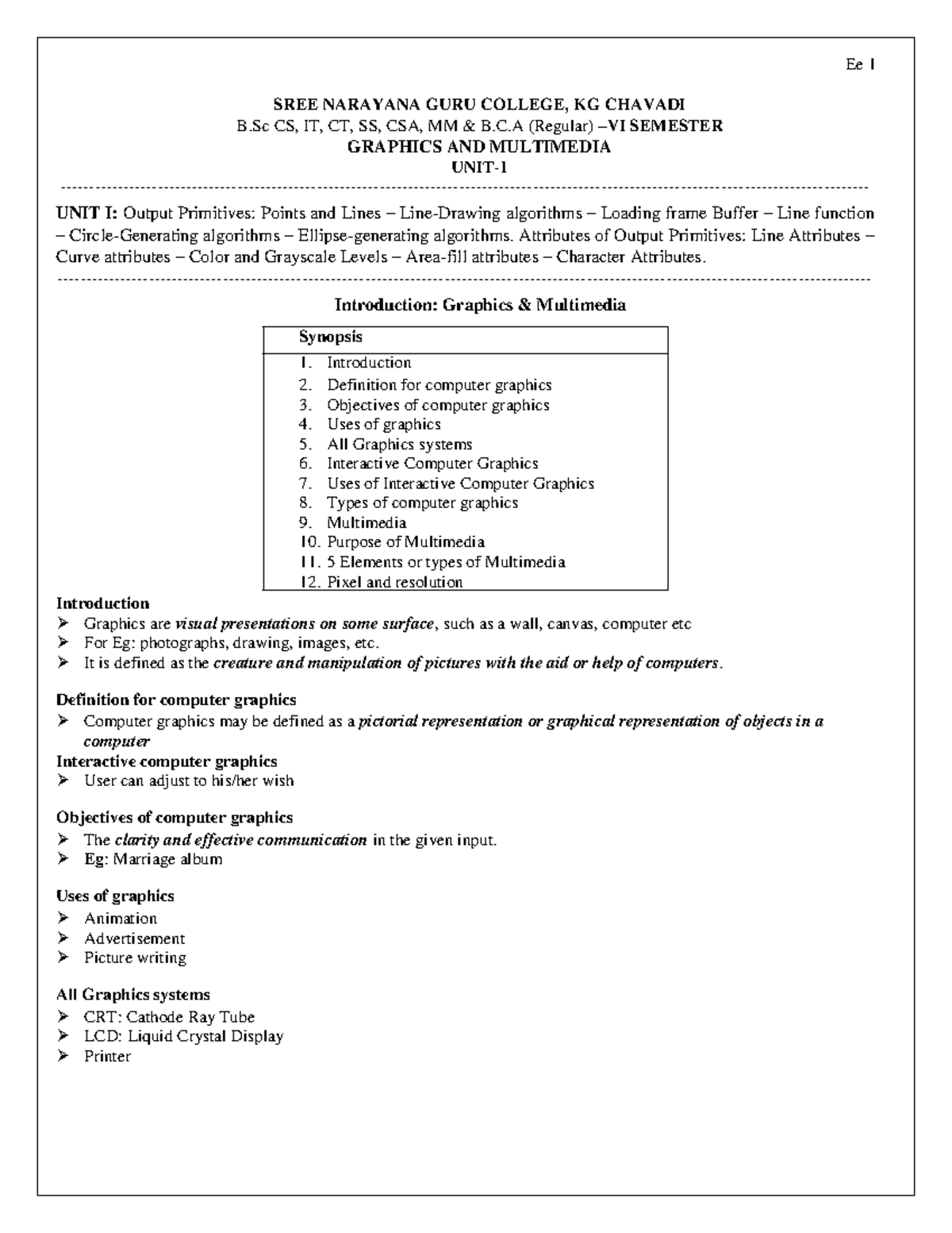 B.Sc CS & B.C.A SEMESTER: Unit 1 - Graphics & Multimedia Overview - Studocu