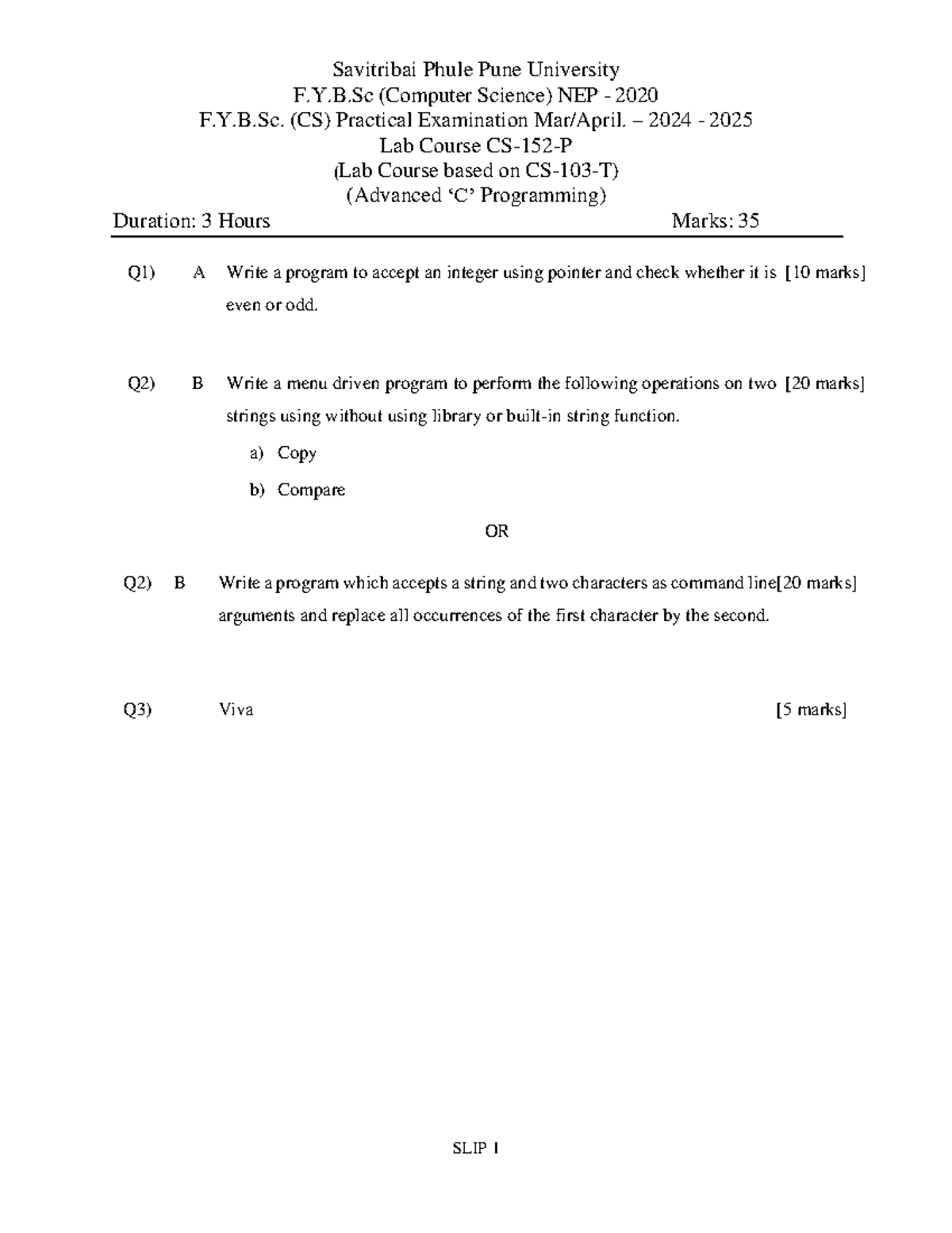 F.Y.B.Sc (CS) Practical Exam 2024-2025: Advanced Programming Lab SLIPs ...