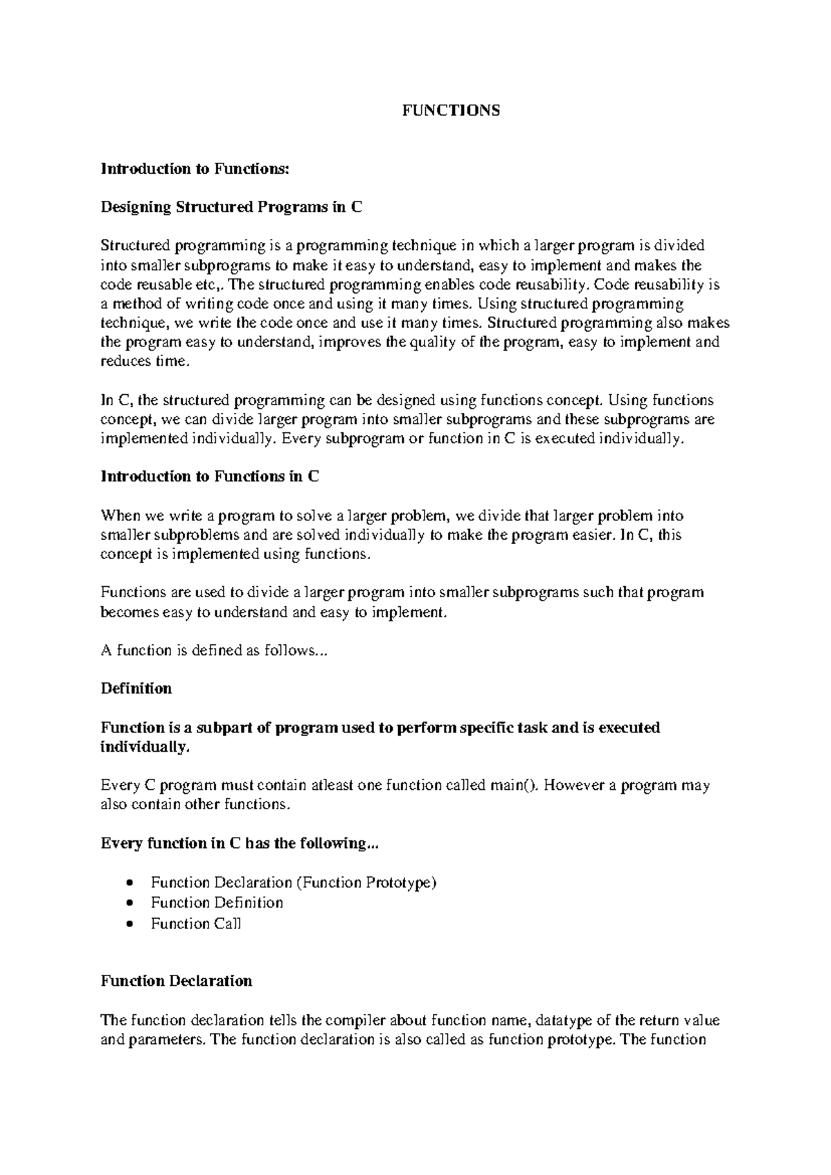 C Programming Functions - Unit 4 Notes on Structured & Modular ...