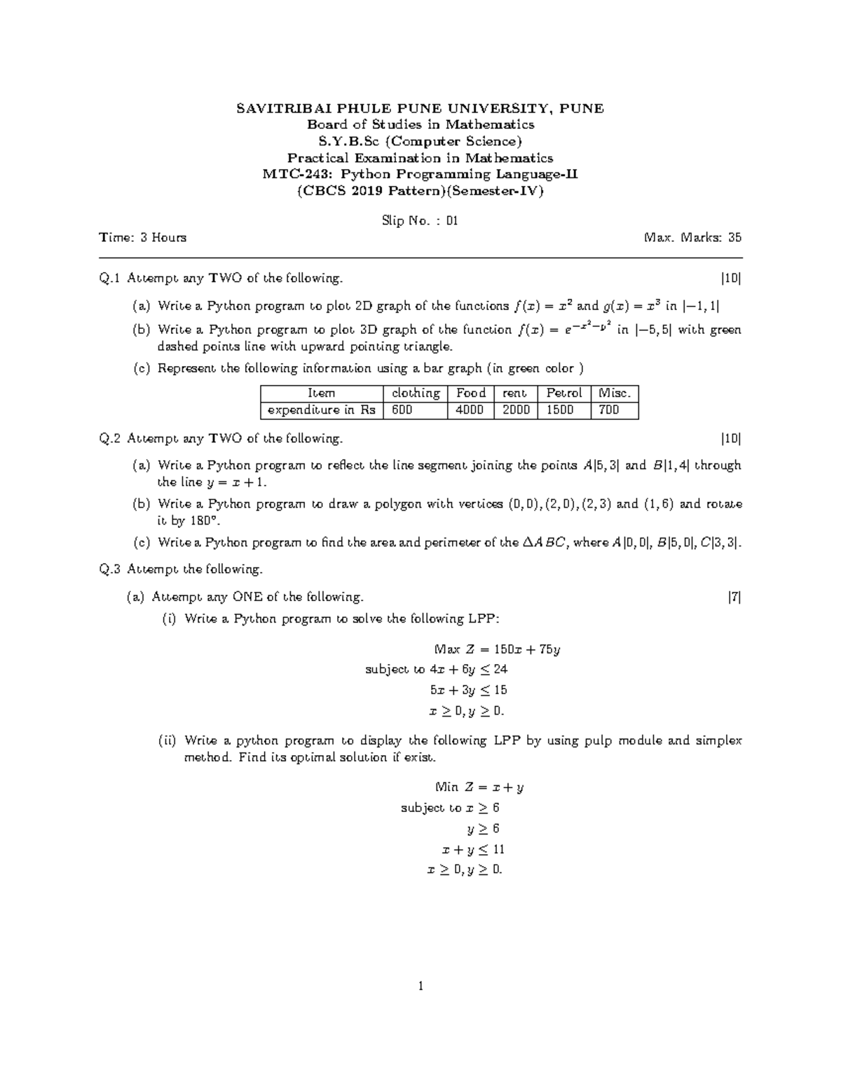 S.Y.B.Sc (CS) SEM-IV Practical Exam Python Programming Slips 2019 - Studocu