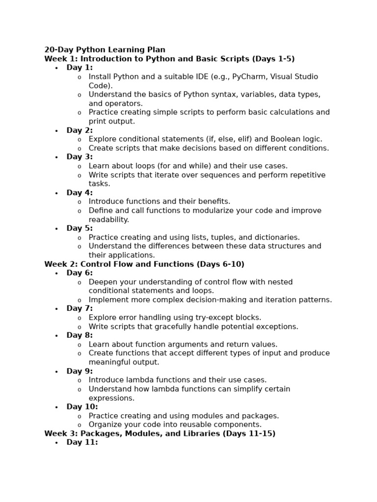 20-Day Python Learning Plan | PDF | Python (Programming Language ...