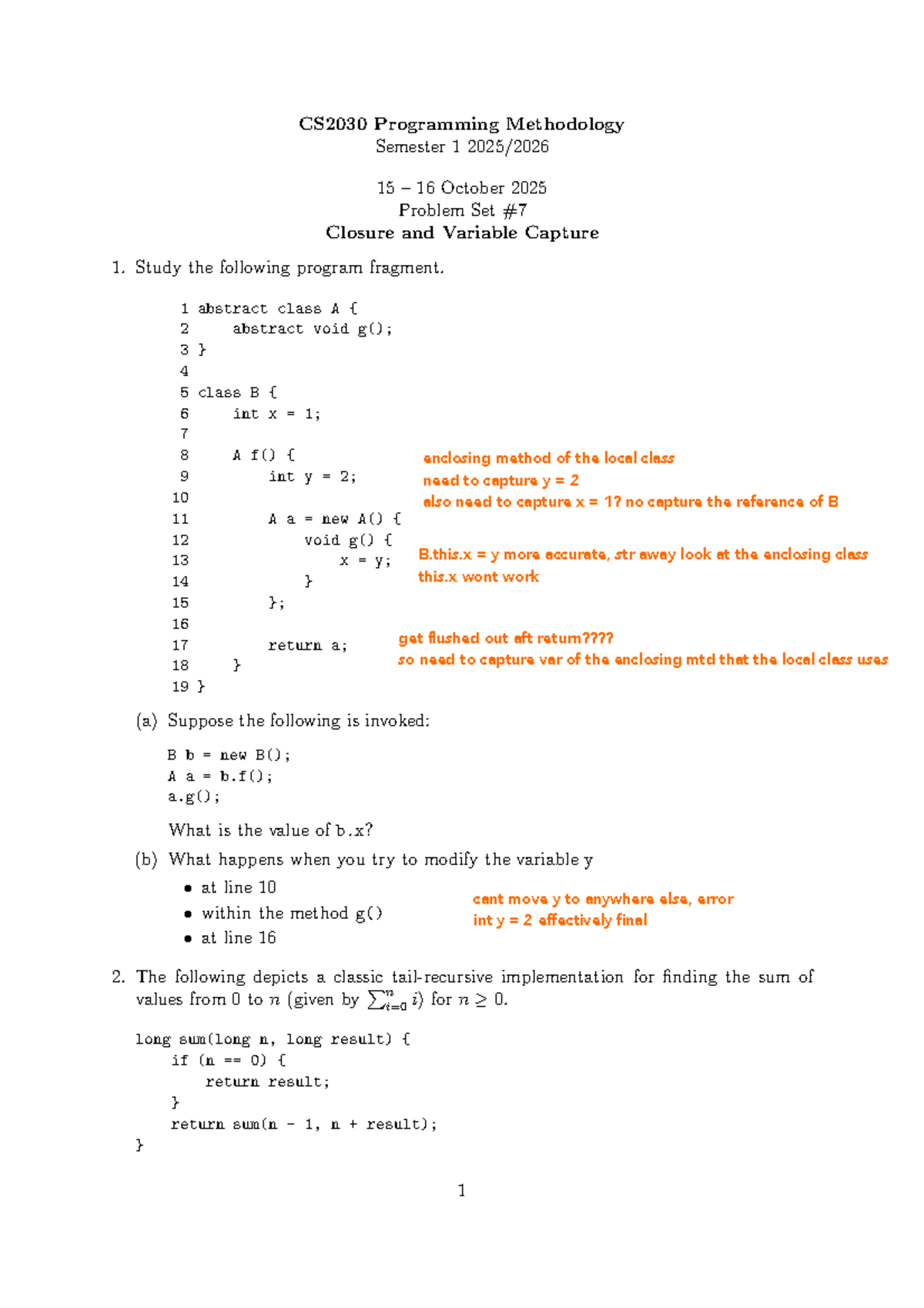 CS2030 Problem Set: Closure and Variable Capture Guidance - Studocu