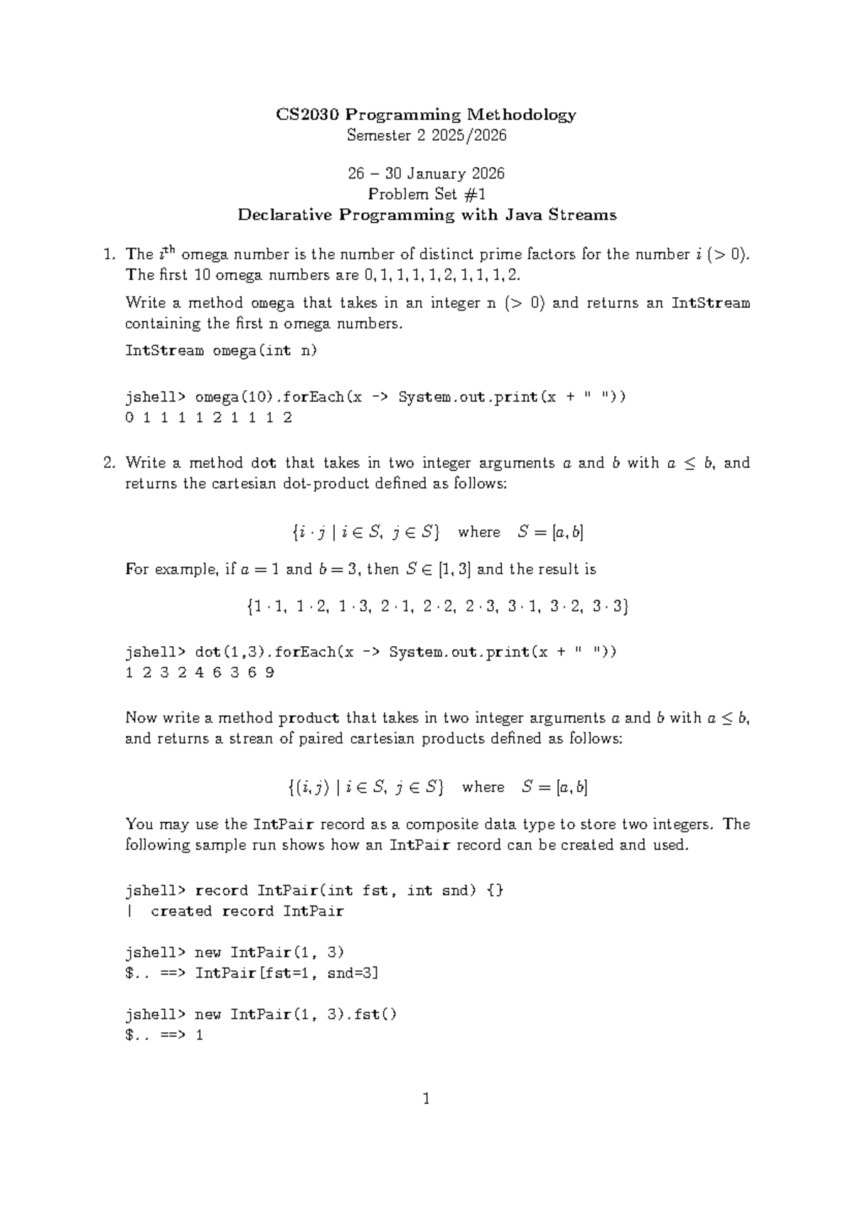 CS2030 Problem Set Guidance: Omega Numbers & Cartesian Products - Studocu