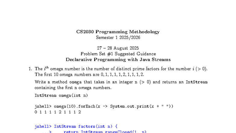 CS2030 Recitation 01: Problem Set on Java Streams and Omega Numbers ...