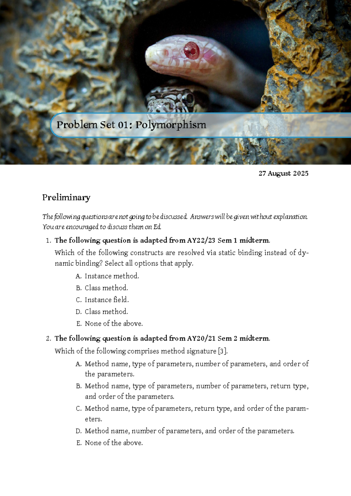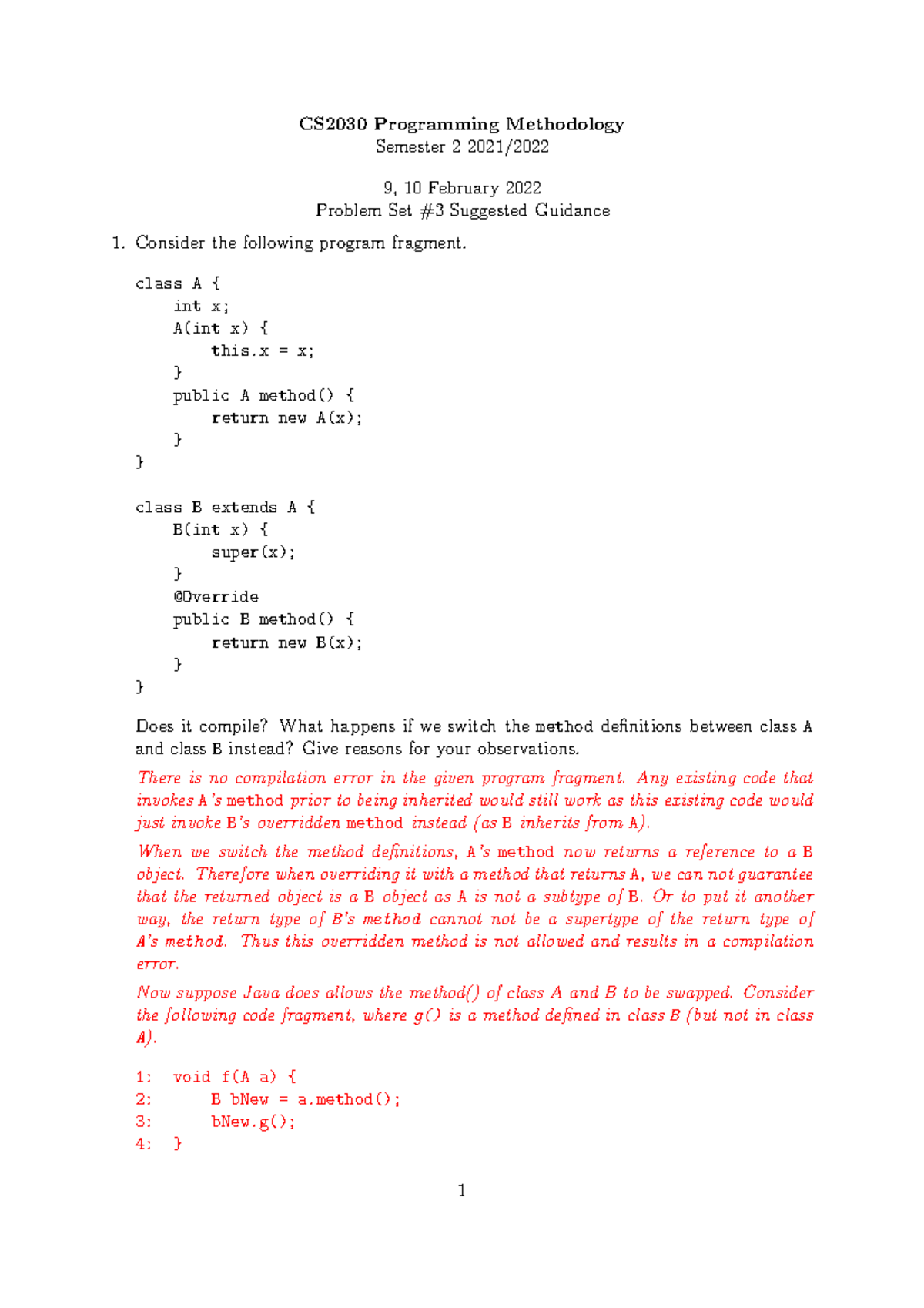 CS2030S S1 Problem Set 01: Polymorphism Overview and Questions - Studocu