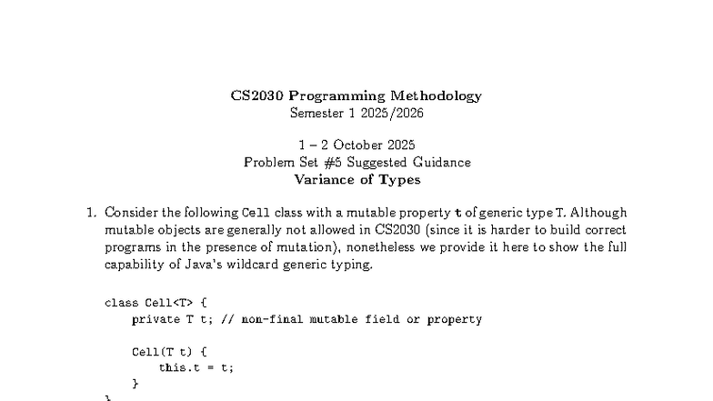 CS2030 Problem Set Guidance: Variance of Types in Generics - Studocu