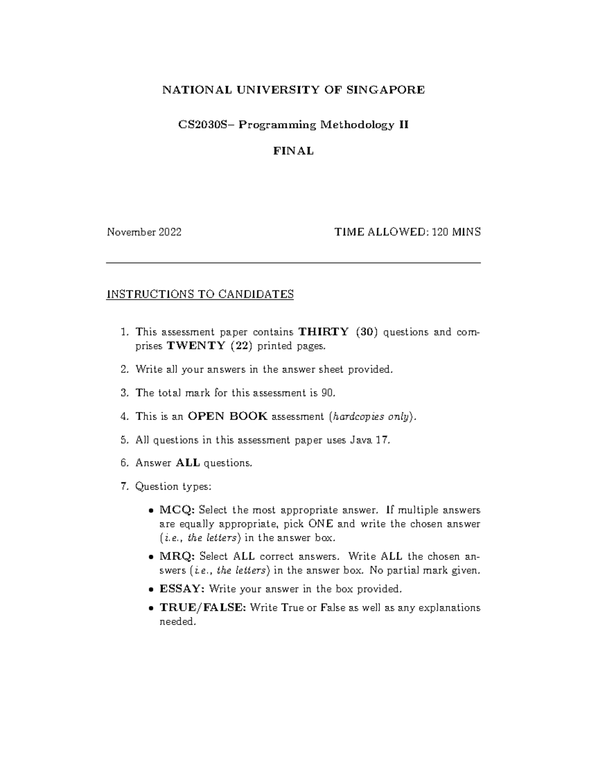 CS2030S Programming Methodology II FINAL Exam November 2022 - Studocu