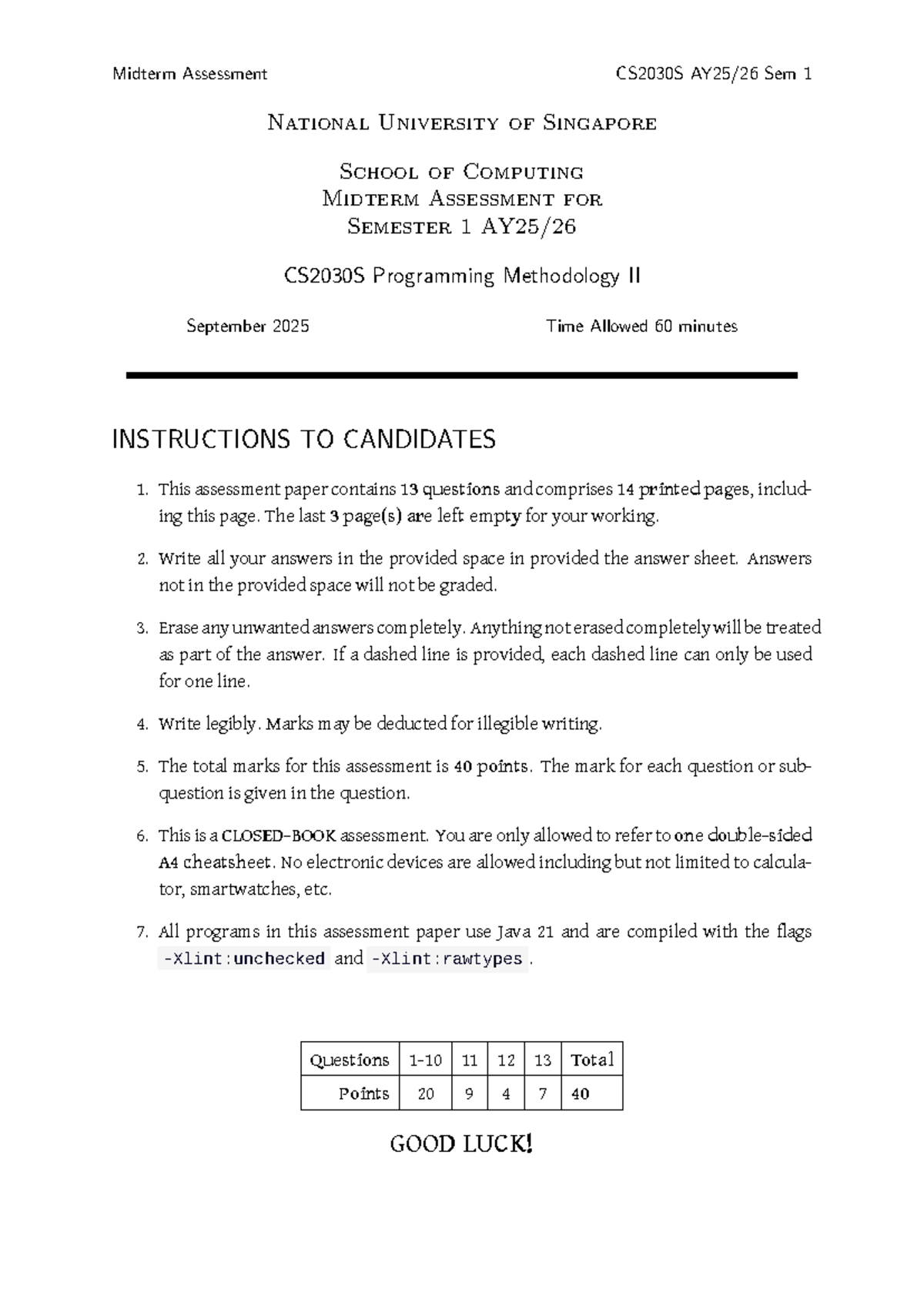 Midterm Assessment CS2030S Sem 1 - Programming Methodology II - Studocu