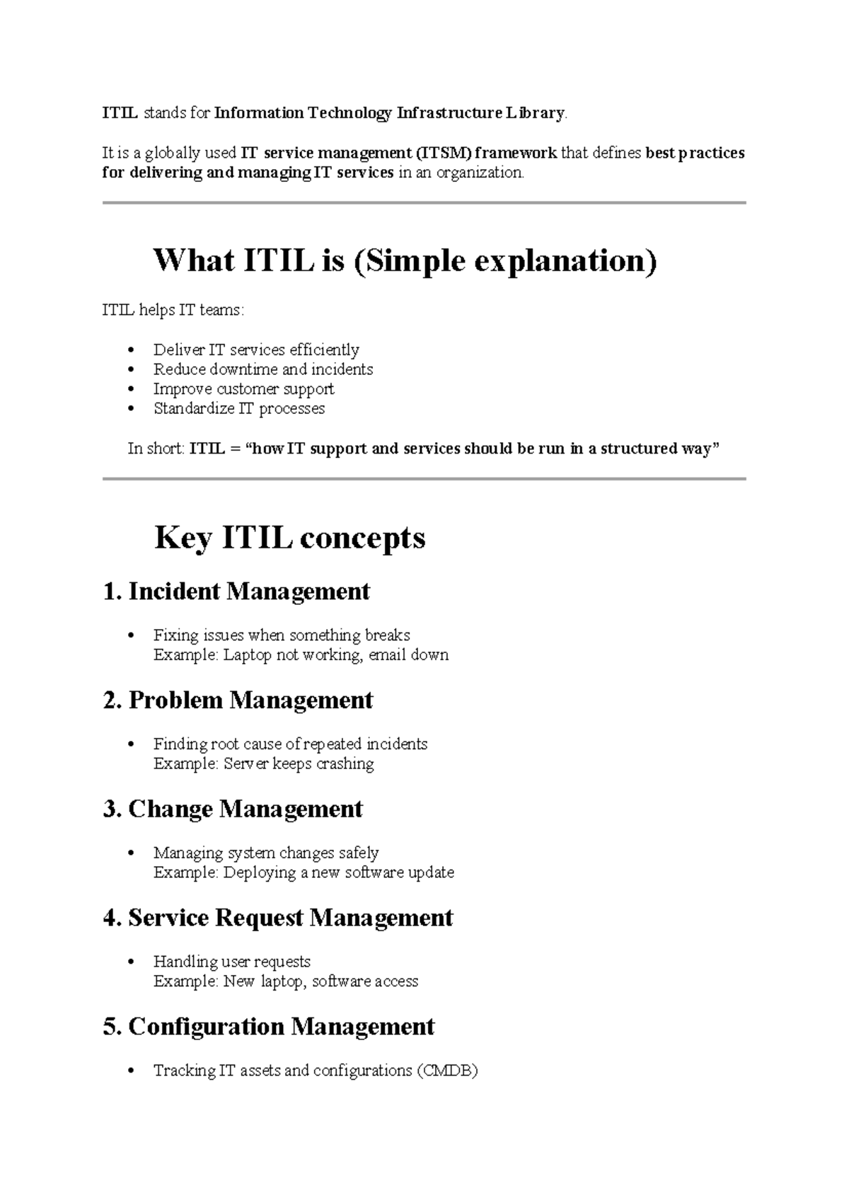 ITIL Framework Overview: Key Concepts and Best Practices - Studocu