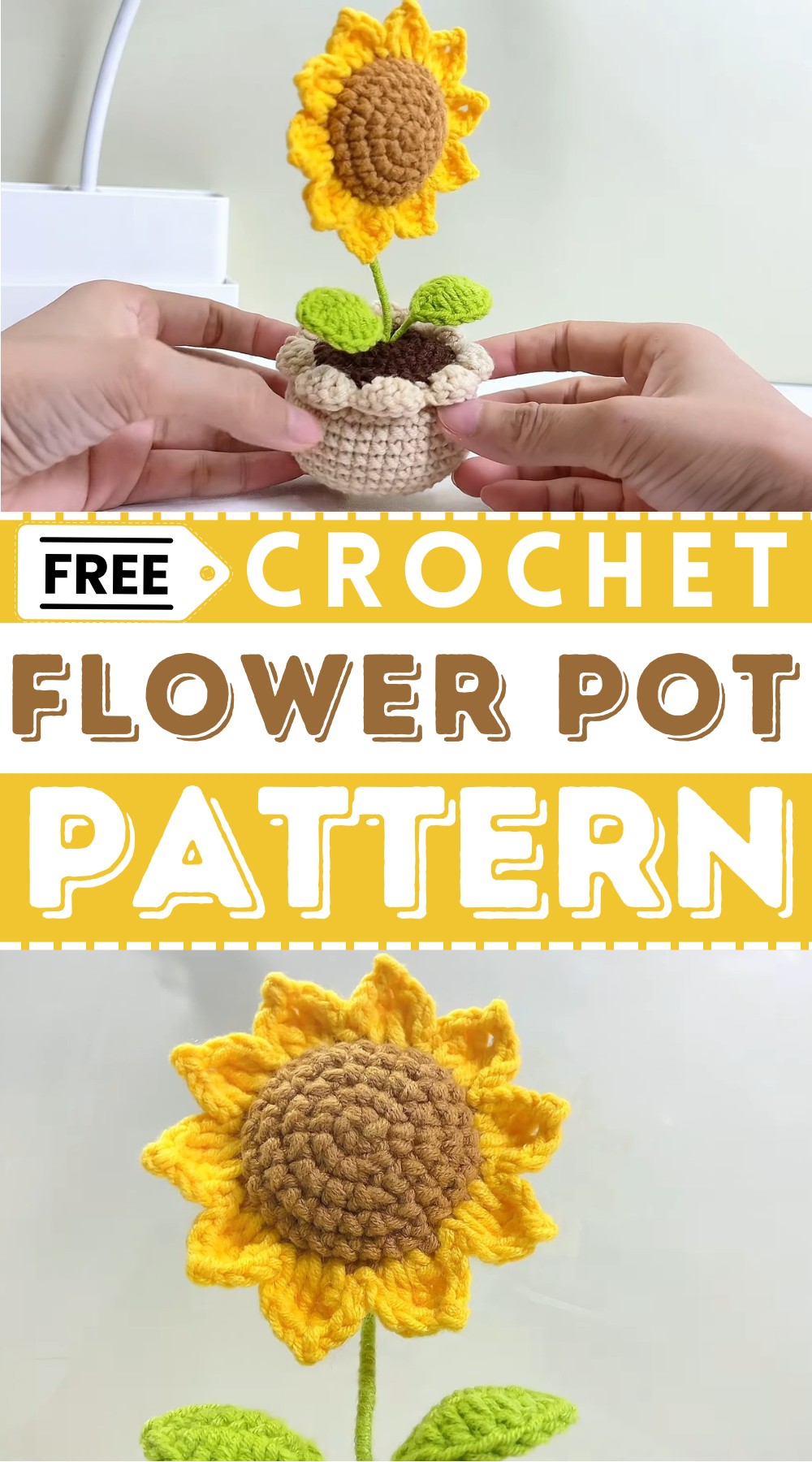 Sunflower Pot Crochet Pattern, Crochet Sunflower Pot Decoration ...