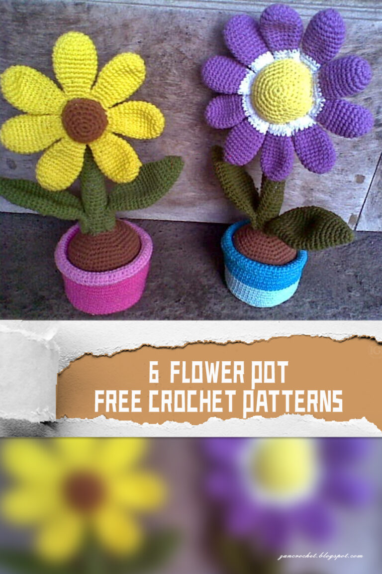 6 Flower Pot FREE Crochet Patterns - iGOODideas.com
