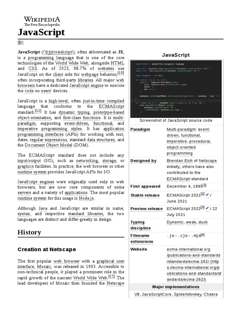 JavaScript Overview and History | PDF | Java Script | Computers
