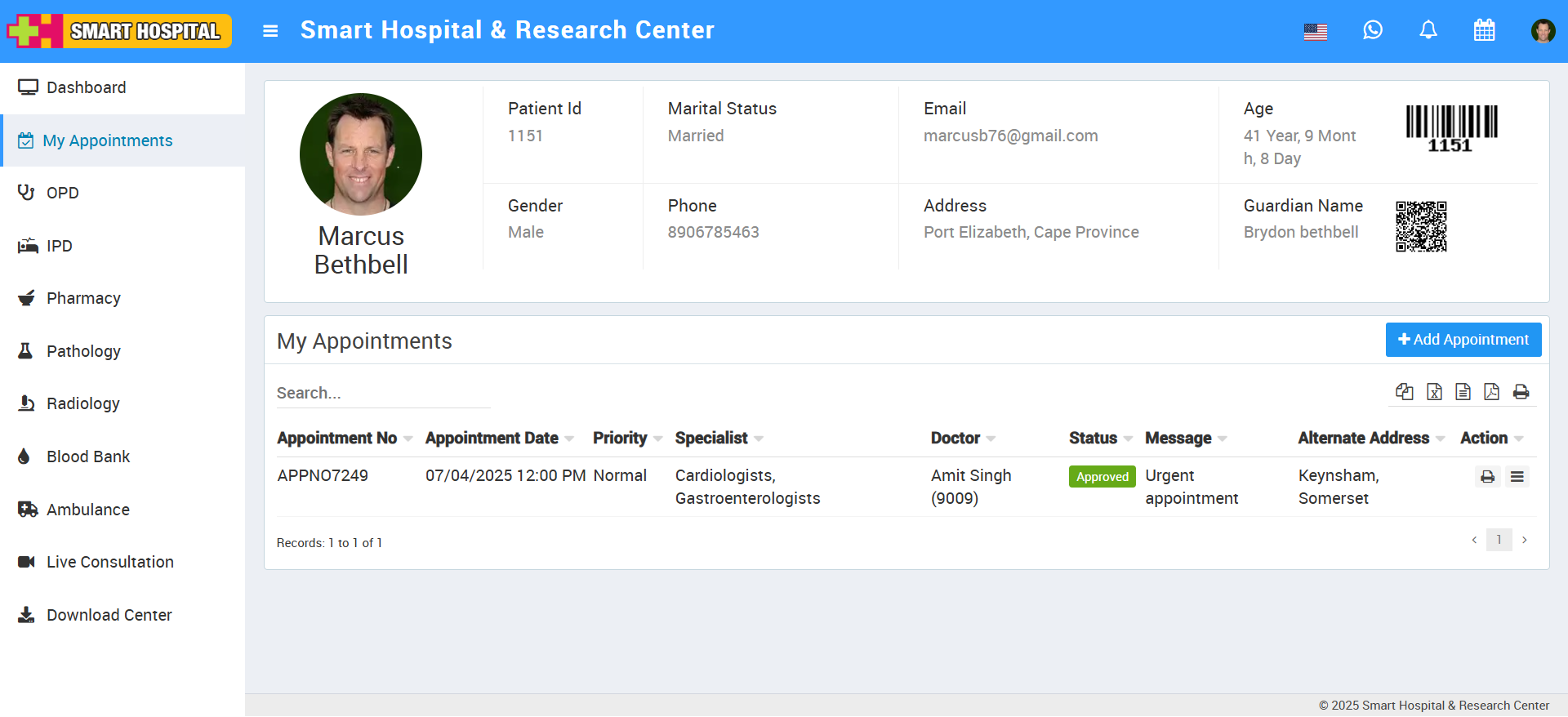 How to add appointment from Patient panel? - Smart Hospital : Hospital ...