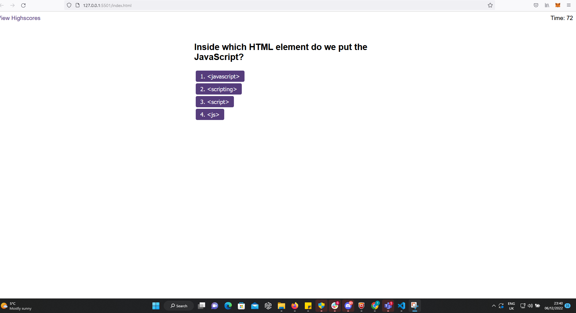 GitHub - Acoleman37/code-quiz: Web developer multiple choice quiz