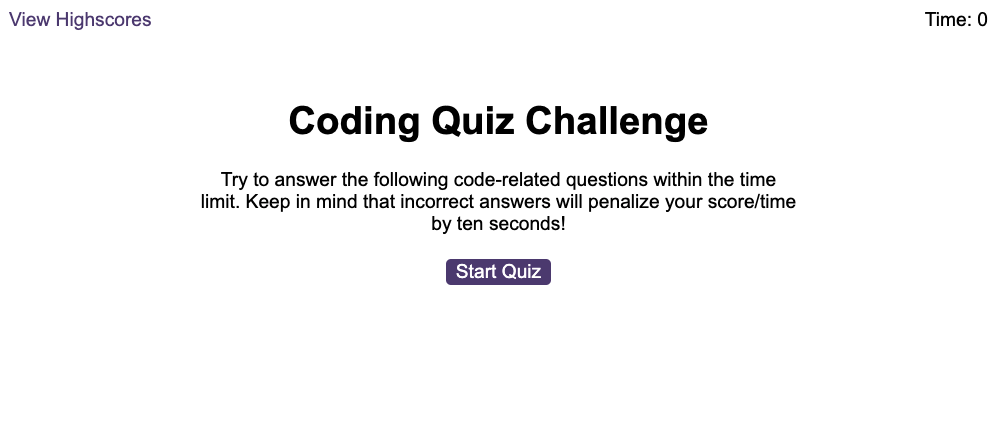 GitHub - janetiqal/Code-Quiz: Code Quiz uses JavaScript to build a quiz ...