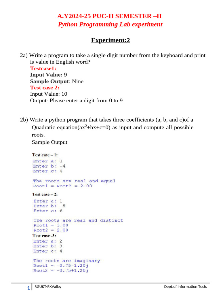 CS4LB3 Python Programming Laboratory Cycle 1 Experiments | PDF ...