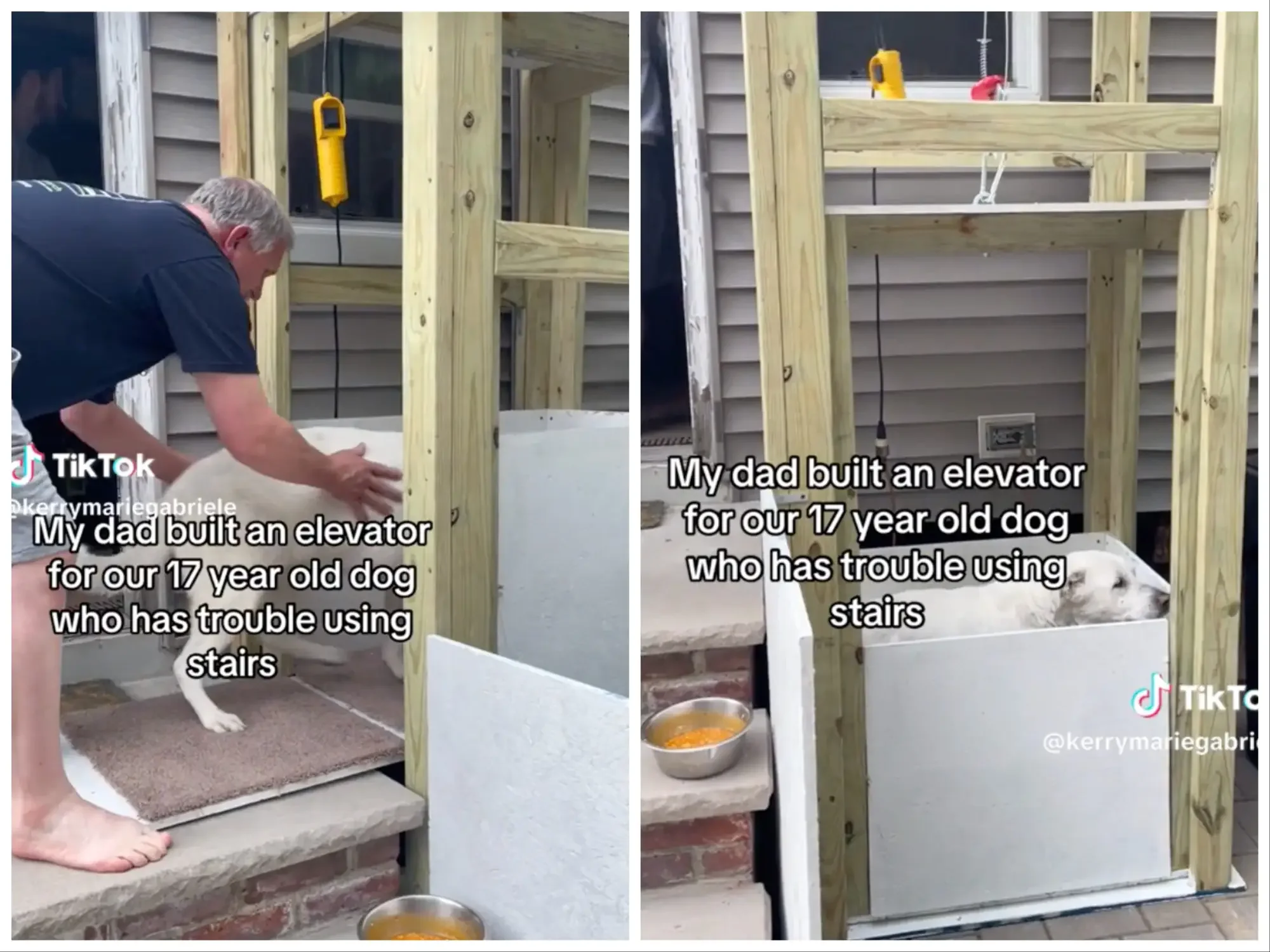 Tutor faz elevador caseiro para cadelinha idosa e vídeo viraliza; veja