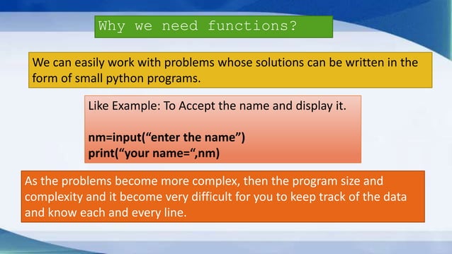 INTRODUCTION TO FUNCTIONS IN PYTHON | PPTX