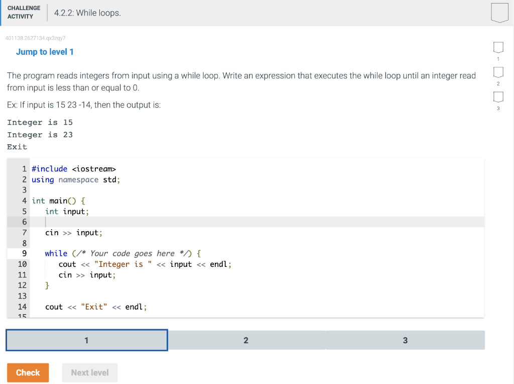 SOLVED: CHALLENGE ACTIVITY 4.2.2: While loops 00027242767 Jump to level ...