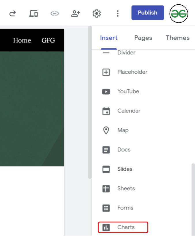 How to insert Charts in New Google Sites? - GeeksforGeeks