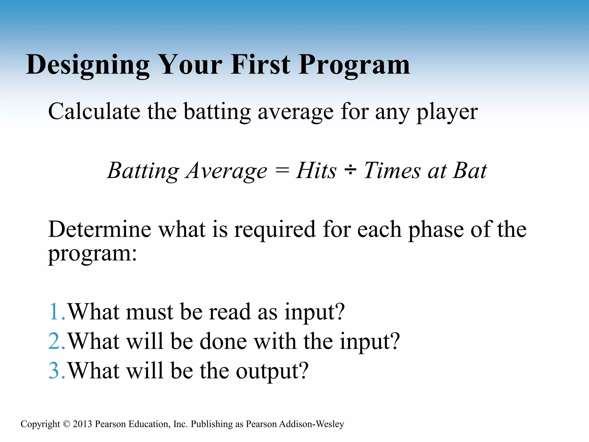 Topics Designing a Program Input, Processing, and Output - ppt download