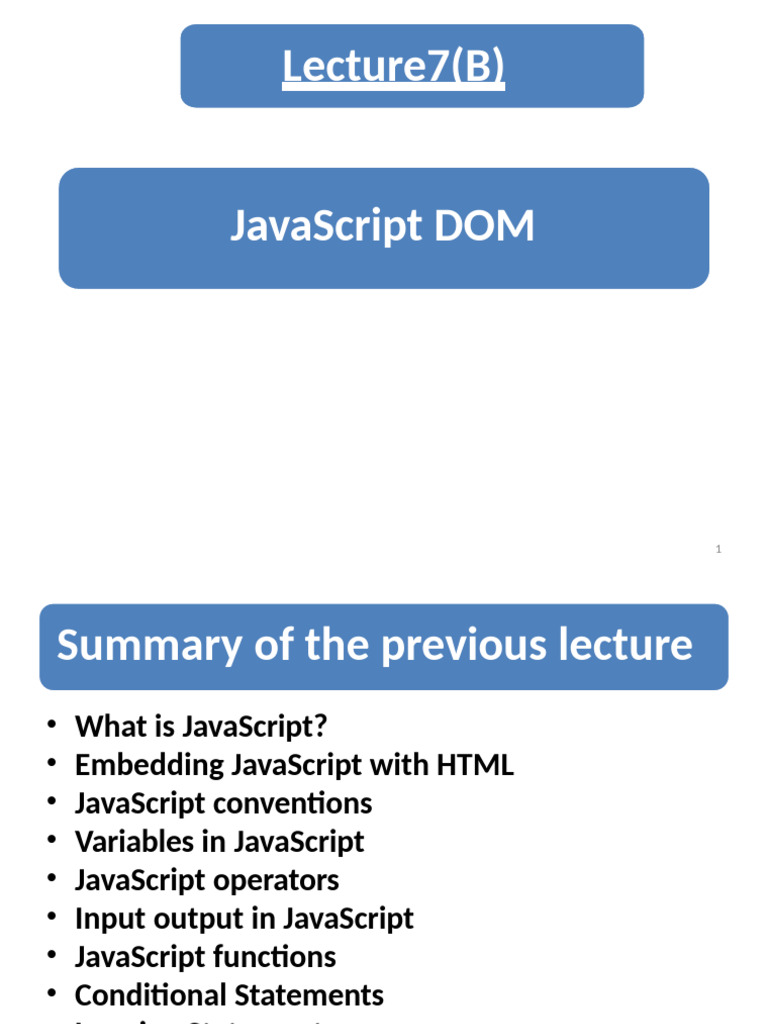 Lecture 7 (B) JavaScript DOM | PDF | Document Object Model | Java Script
