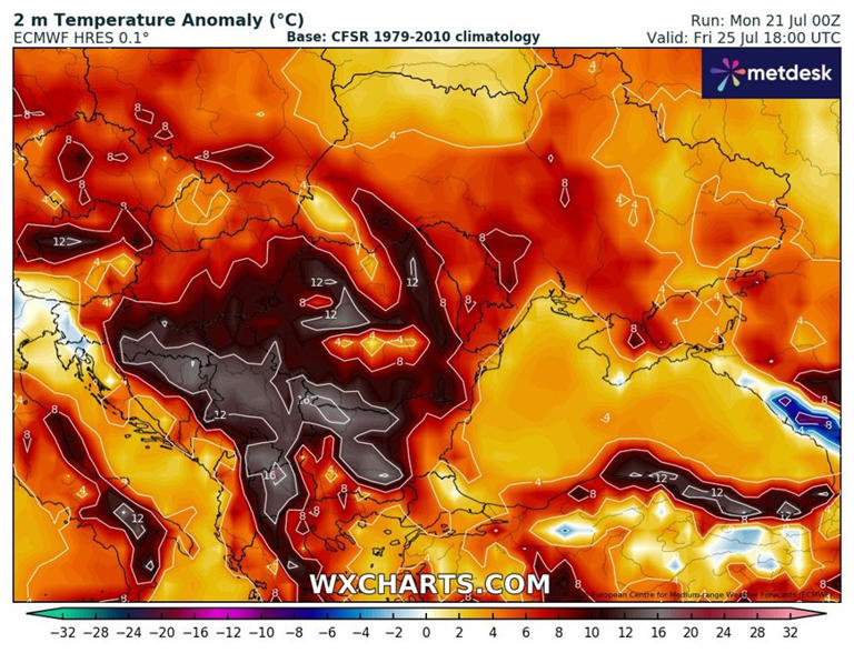 Długotrwała fala afrykańskich upałów nad Europą. Anomalia sięgnie 12 st. C
