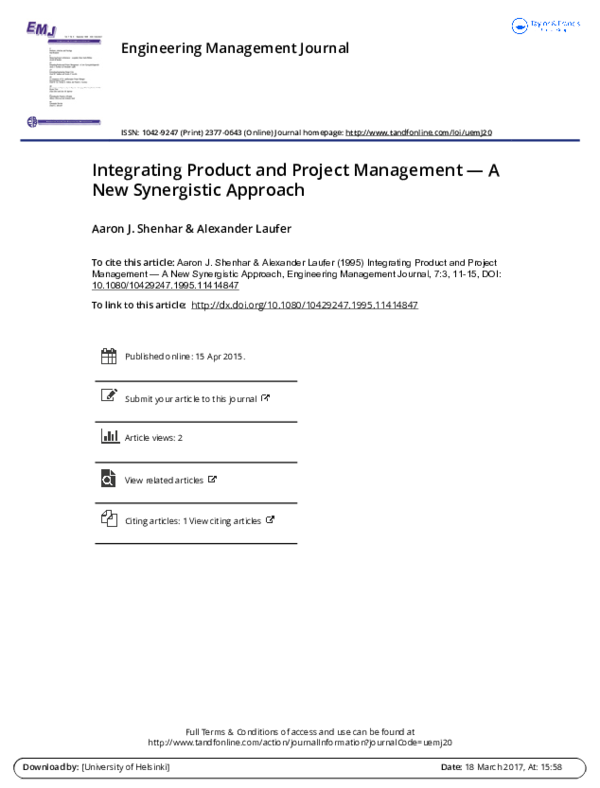 (PDF) Integrating Product and Project Management — A New Synergistic ...