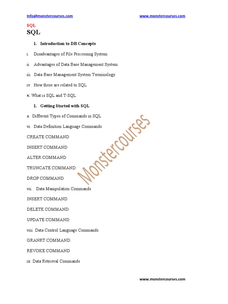 SQL Course Content IT CONTAINS EVERYTHING - SQL SYLLABUS 1. Getting ...