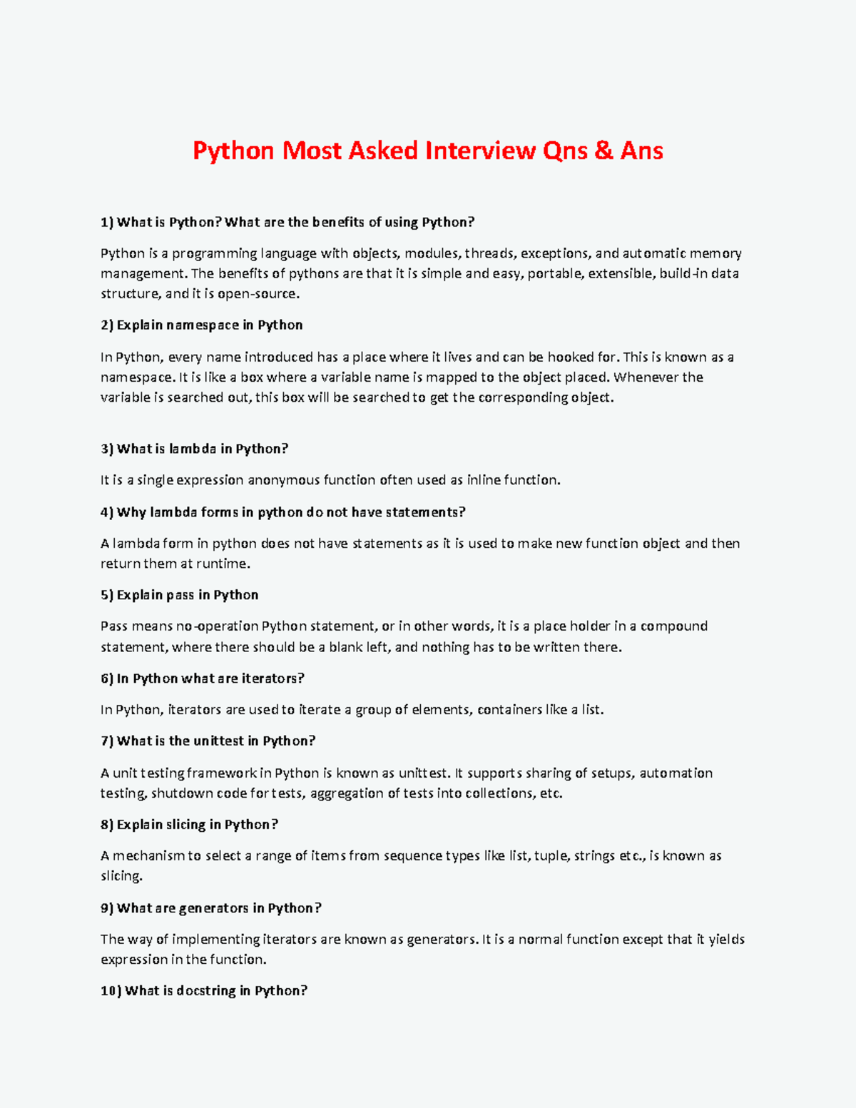 Top 10 Python Interview Questions & Answers | Crack Any Python ...