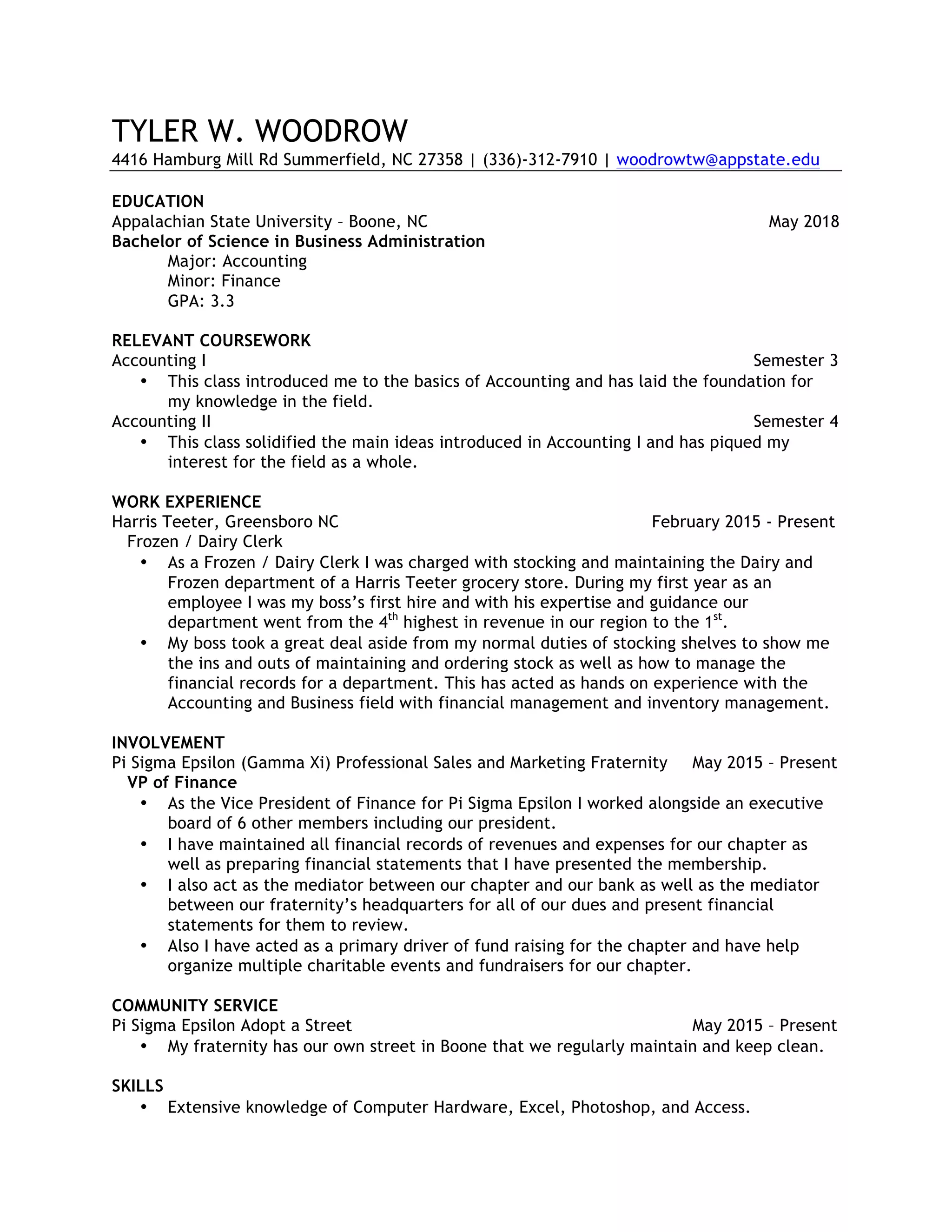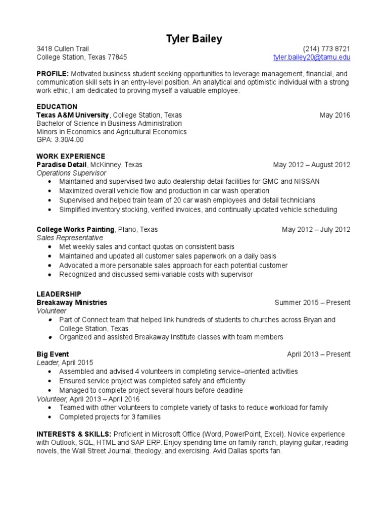 Buccini Tyler Resume | PDF | Undergraduate Education | College Education