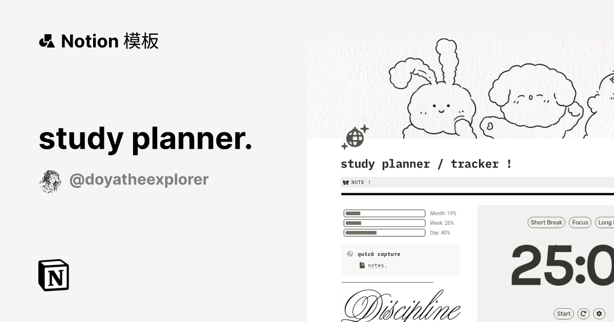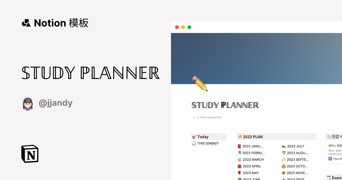 𝕊𝕋𝕌𝔻𝕐 ℙ𝕃𝔸ℕℕ𝔼ℝ 模板 | Notion 市集