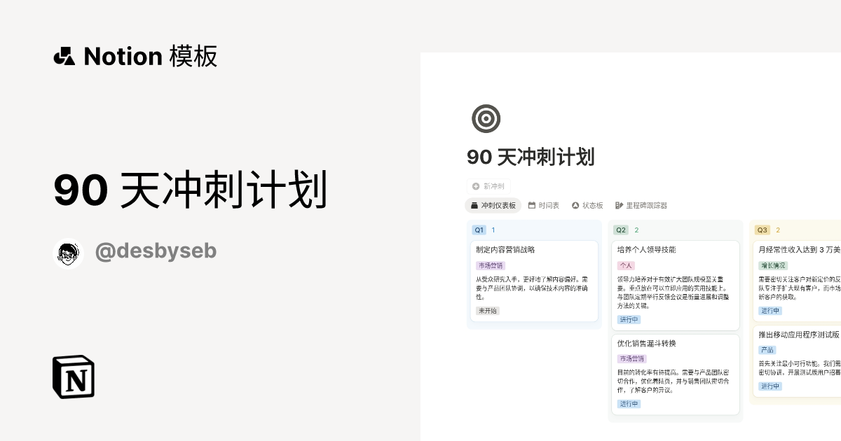 来自 desbyseb 的 90 Day Sprint Planner 模板|Notion市集