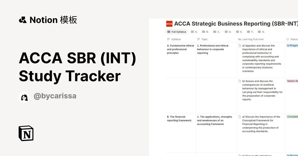 ACCA SBR (INT) Study Tracker 模板 | Notion 市集