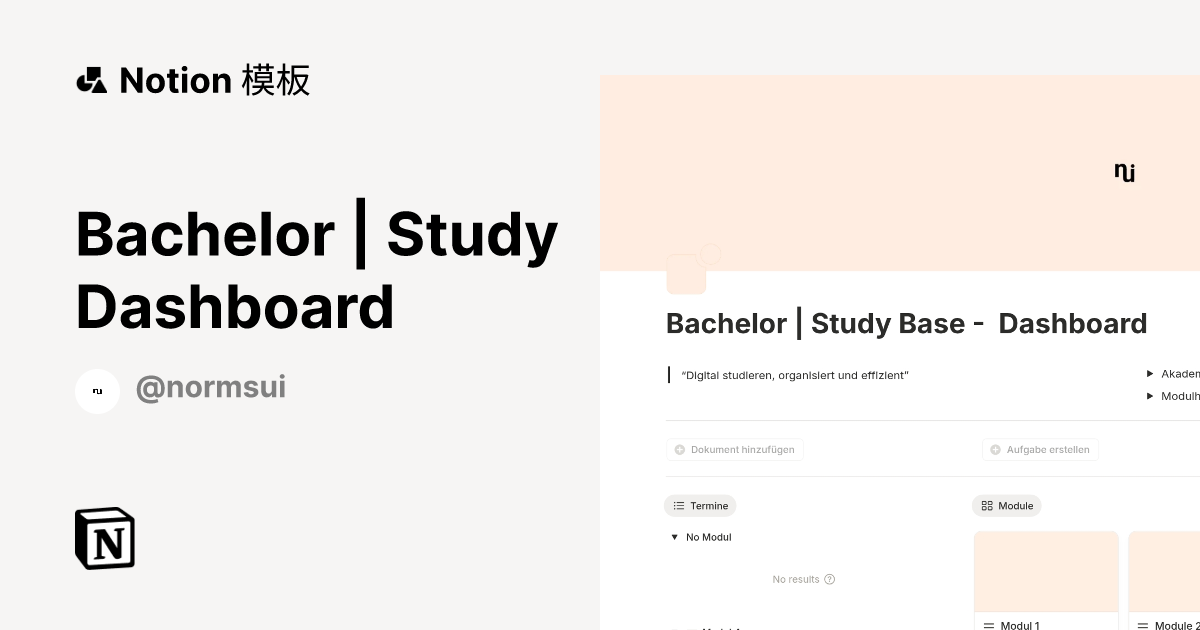 来自 norms ui 的 Bachelor | Study Dashboard 模板|Notion市集