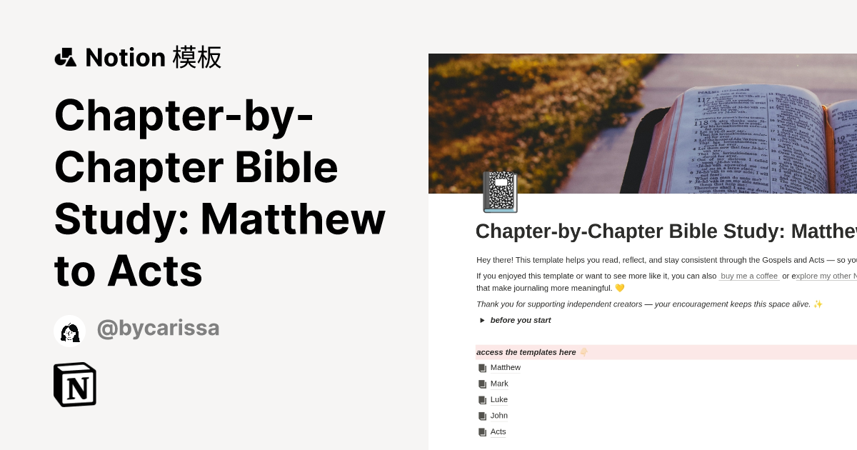 来自 Carissa 的 Chapter-by-Chapter Bible Study: Matthew Acts 模板|Notion市集